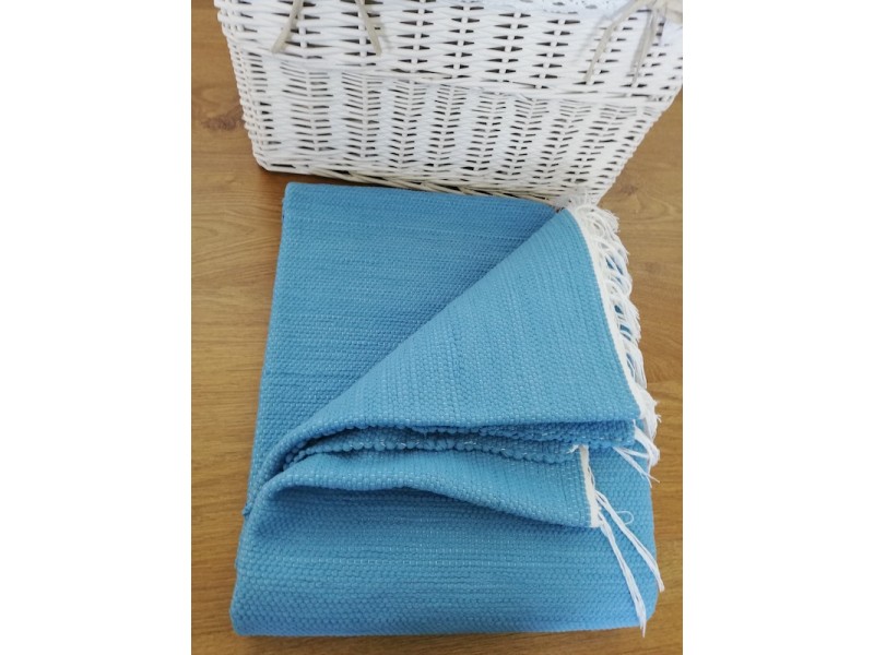 (Esgotado) Tapete artesanal Liso (azul ciano) - 100% algodão - 150 x 200 cm (Estimado)